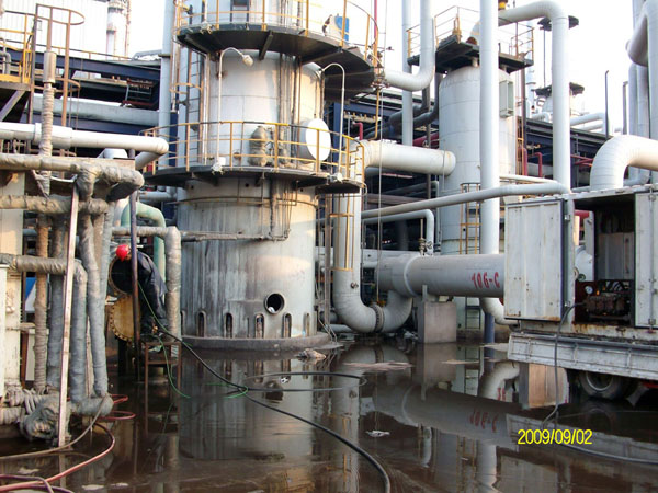 某化工廠大修化換熱設備物理清洗現(xiàn)場